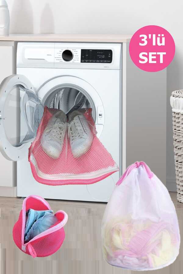 3 Pcs Set Laundry Bra Shoe Washing NetShoe, Laundry, Bra Washing Net 3-Set. Package Contents: 1 Piece of Shoe Washing Net with Zipper. 1 Piece Bra Washing Net with Zipper. 1 Piece Laundry Net 40x60 cm with shirring. Assorti will be sent in mixed colors according to stock status.