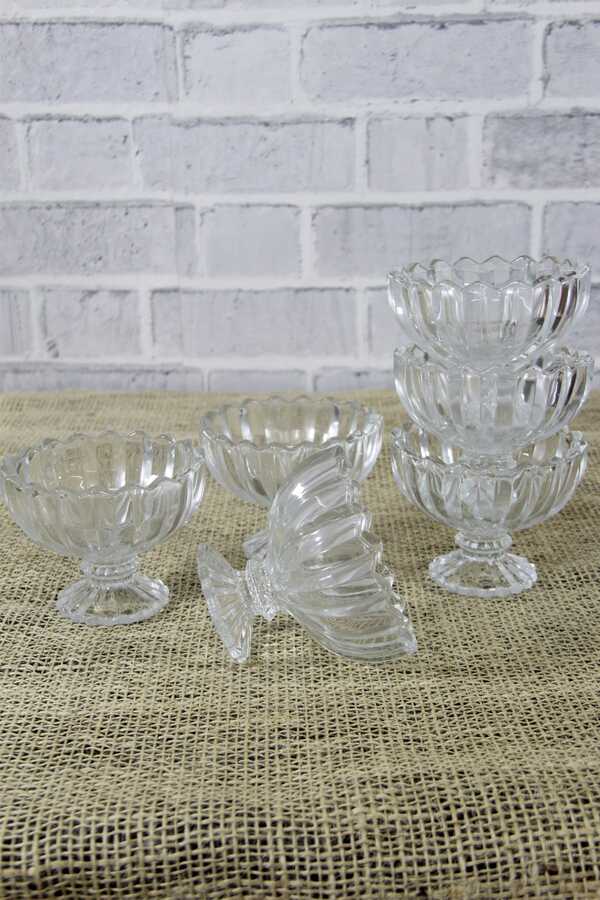 6 Pcs Luxury Footed Glass Bowl Snack Bowl, Sugar Bowl, Turkish Delight Holder, Ice Cream, Dessert Pudding Cup Bowl