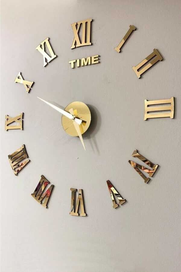 Altın-gold Dekoratif 3d Duvar Saati Pleksi Ayna Roma Rakamlı· Sadece rakamlardan oluşan özel tasarım saat. Ortama şıklık ve zerafet katan minimalist tasarım. · Ürün Özellikleri: 1 rakam uzulunluğu: 7 cm dir. Rakamların ve Saat mekanizmasının bulunduğu malzeme özellikleri, 3mm mdf üzerine 1mm aynalı altın pleksi yapıştırılarak lazer kesim tekniği ile üretilmektedir. Akrep: uzunluğu 10 cm, yelkovan uzunluğu 13cm, Saniye uzunluğu 14 cm dir. Saat mekanizma sesi rahatsız etmeyecek kadar sessizdir. Tek pil ile çalışmaktadır. ( Pil gönderimi yapılmamaktadır.) · Montaj açıklaması: Saati doğru bir şekilde montajlayabilmeniz için paketin içerisinde şablon bulunmaktadır. 25 cm ile 100 cm aralığında ki bir alana şablonunuzla kolayca yapıştırabilirsiniz. Rakamları yapıştırabilmeniz için paket içerisine çift taraflı bant eklenmektedir. Saatinizi duvara yapıştırmadan önce rakamların arka kısmının ve yapıştıracağınız alanın tozlu olmamasına dikkat ediniz. Tozlu alanlar yapışkanın tutmasını engelleyecektir. · Ürünün temizlik işlemi hafif nemli bez ile yapılmadır. · Not: Rakamların ön yüzeyinde çizilmesini önleyeci jelatin kaplıdır. En son jelatini kaldırıp ayna görüntüsünü elde edebilirsiniz.Explore more options