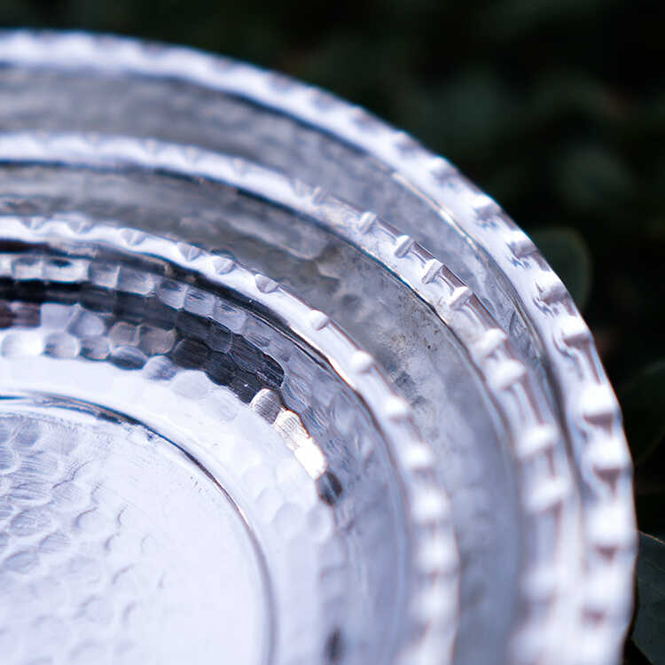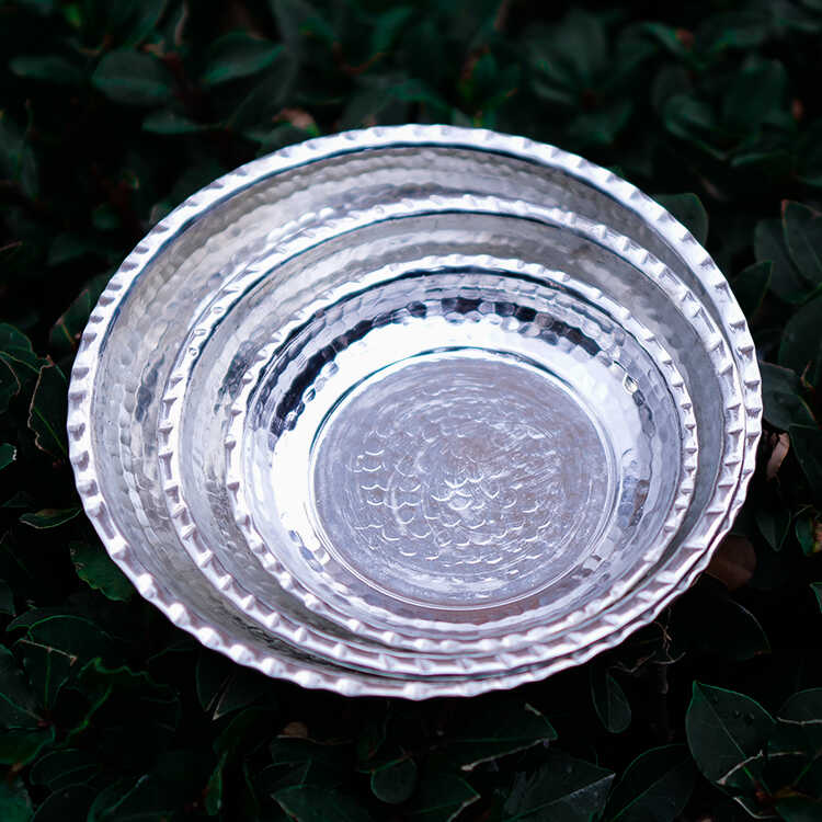 Gourmeturca Appetizer Copper Plate Set is completely handcrafted. The engraving on the outside is forged handwork. It is made of 0.8 mm thick copper. The inner and outer parts are tin plated. There are plates of 3 different sizes in the set. Suitable for main course, soups, salads, and desserts.
