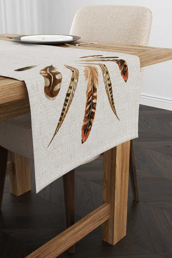 Brown Bohemian Feather Patterned Digital Printed Runner Cgh626-rn Digital Printed Runner Dimensions are manufactured as 40cm x 140 cm SEW the Edges. Different sizes of this pattern can be typed CGH626 for double-sided printed tablecloth Runner and Curtain. It has a minimum shrinkage rate since the finish is fixed before it reaches you. Textile dyes used in our fabrics are approved by international test companies that they are not harmful to human and animal health. Imported dyes have MSDS documents. They can be washed in delicate programs, warm ironing can be done, no bleaching. We recommend that you follow the cleaning and maintenance instructions in the seller.