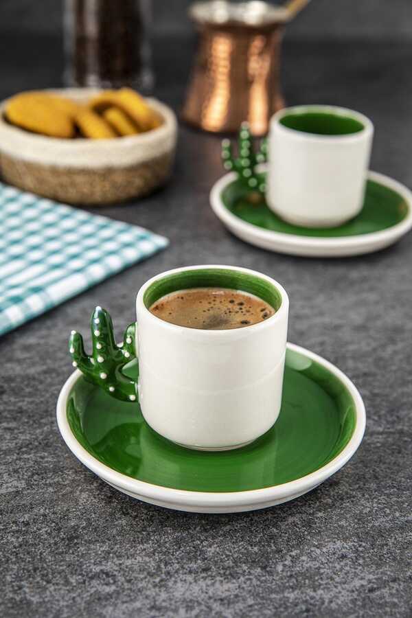 Cactus Handmade Turkish Coffee, Espresso Cup Green 2 Pieces,