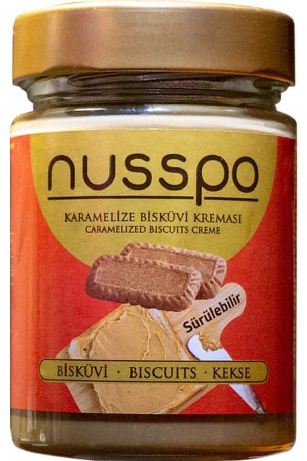 Caramelized Biscuit Spreadable Cream 350 gr Caramelized Biscuit Cream Nusspo Caramelized Biscuit Cream is the first and only biscuit cream produced by Nusspo in Turkey. Nusspo Caramelized Biscuit Cream will be indispensable for your breakfast tables with its spreadable form and wonderful biscuit taste.