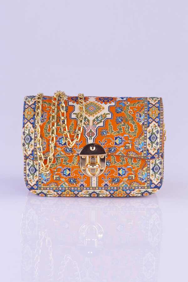 Chain Woven Rug Patterned Women's Shoulder Bag