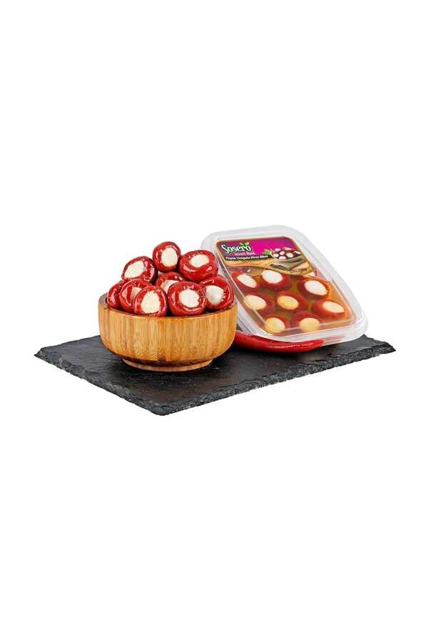 Sosero Cheese Filled Cherry Pepper Vacuum Base 250 Gr Sosero cheese filled Kardola pepper contains 250 gralergen Ingredients: Kardola pepper, cheese, vegetable oil, salt. Keep in a cool and dry place. Protect from sunlight. After opening, keep in the refrigerator. Nutrient elements / per 100 g energy : 144.24 kcal fat : 7.48 g saturated fat : 1.548 g carbohydrate : 16.07 g sugar : 2.02 glyph : 2.5 g protein : 4.41 gt salt-Sodium : 2, 63 g Price listed is valid until 12 November 2021.