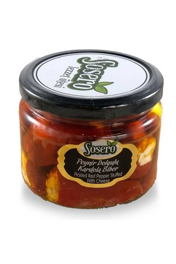 Sosero Cheese Filled Kardola Pepper 300 Cc Sosero cheese filled Kardola pepper contains 300 ccalergen Ingredients: Kardola pepper, cheese, vegetable oil, salt. Keep in a cool and dry place. Protect from sunlight. After opening, keep in the refrigerator. Nutrient elements / per 100 g energy : 144.24 kcal fat : 7.48 g saturated fat : 1.548 g carbohydrate : 16.07 g sugar : 2.02 glyph : 2.5 g protein : 4.41 gt salt-Sodium : 2, 63 g