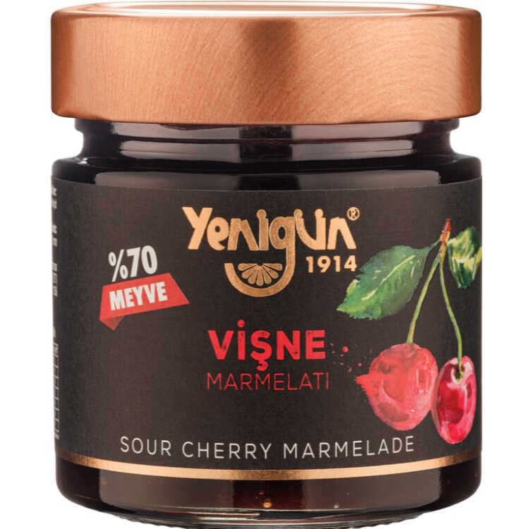 Yenigün Cherry Marmalade is presented to the consumer in a glass jar weighing 250 grams. Yenigün Cherry Marmalade contains 65 percent fruit. Made from carefully selected fruits, the jam is made by adding sugar, fruit juice and lemon juice. While consuming homemade jam that does not contain additives, you can enjoy the fruit flavor with its full flavor. Yenigün jams are obtained as a result of collecting and processing fruits and vegetables at full maturity. All products are cooked in vacuum boilers and at a temperature not exceeding 60 degrees. Maximum protection is provided in color, taste and aroma. Thus, the color is lighter and more vivid. The taste and aroma are almost the same as the fruit.