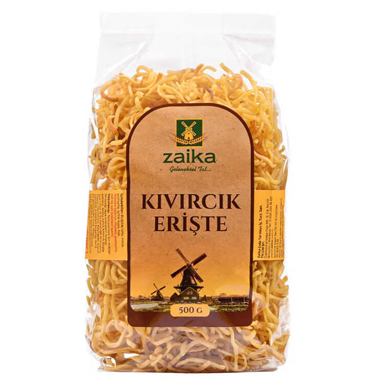 Zaika Curly Noodles - Eriste is obtained only with flour, milk, eggs and salt. Produced with traditional methods and without additives, it always preferred thanks to its durability and nutritious properties. It, which can be consumed in every month of the year and used in meals, are made by kneading the ingredients in the dough. After kneading the dough for a few hours, it is cut into smaller pots. Then, these meringues dried by natural methods and become noodle. It forms a feast on the tables with its unique taste. You can prepare a healthy and nutritious meal for your children.
