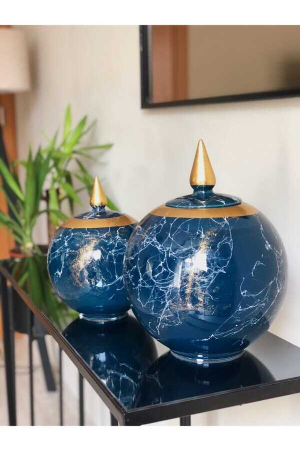 Decorative 2 Li Sultan Cube Vase 2 Li Sultan Cube Decorative Vase Dark Blue Marble Patterned Size Large Size: 32cm Small Size: 26 cm 18 carat gold is used in the products.