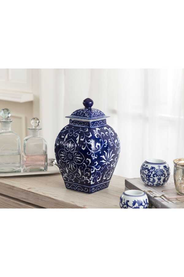 Dijon Bleu Blanc Decorative ObjectProduct Description: Dijon Bleu Blanc Decorative Object The Covered Dijon Bleu Blanc Decorative Object, designed with blue and white patterns, will add character to your decoration style with its strong aesthetic stance. Make stylish touches to your home with the positive energy brought by blue and white patterns that never go out of fashion. Technical Specifications: Product Type: Porcelain Color: Blue / White Place of Manufacture: Imported Dimensions: Width, height, height: 15x15x37,5 cm Base diameter: 10.5 cm Widest dimension: 17,5 cm Care and Usage Instructions: Porcelain and Ceramic products, due to the nature of their raw materials, may show structural changes and create crack-like appearances on them after they become products. To clean the surface of the base, prefer a damp cloth instead of a wet cloth. Package Contents: Vase: 1 Piece Cover: 1 Piece.