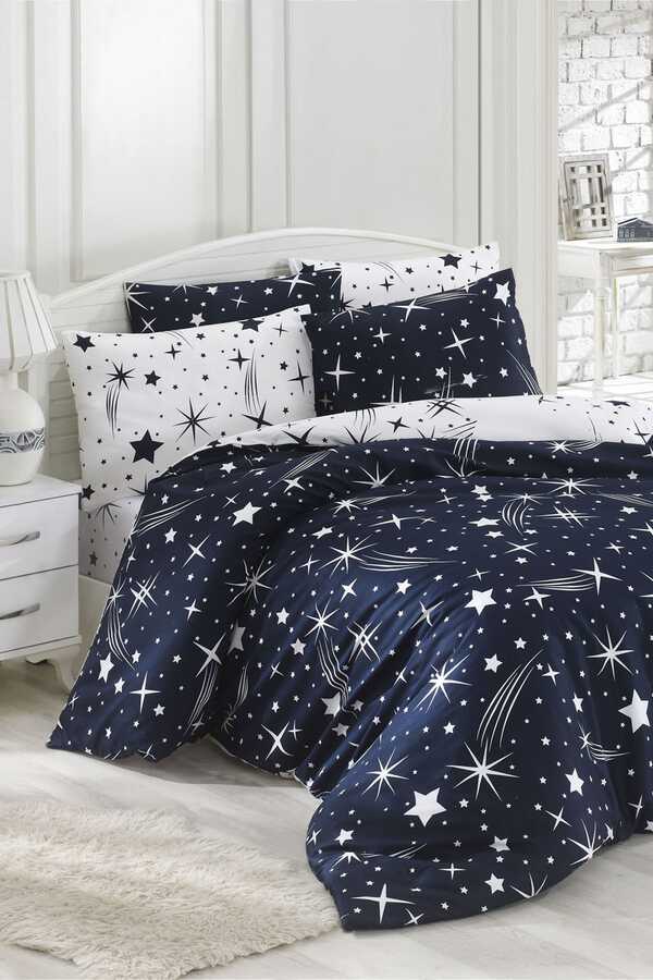 Home & Home Home Mature Duvet Cover Set Double Halley Navy Blue Duvet cover: 200x220 cm Pillow Case: 50x70cm (2 Pieces) 65% Cotton 35% Peel Thanks to the fact that the duvet cover is with buttons, it is easy and fast to pass the quilt. Package Content Consists of 3 Pieces of Product. Duvet Cover + Pillow Cover Set. There is no sheet in the set. Easy to Iron, Dries Quickly, Does Not Flow.