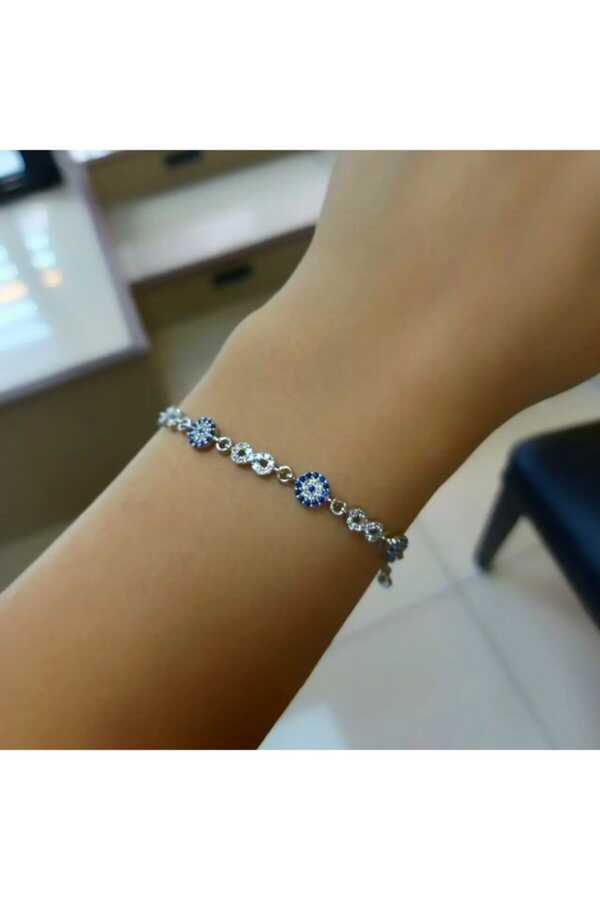 • Evil Eye Beaded Infinity BraceletOur product is 925 Sterling Silver. The stones are zircon. Its length is in the range of 20-25 cm.