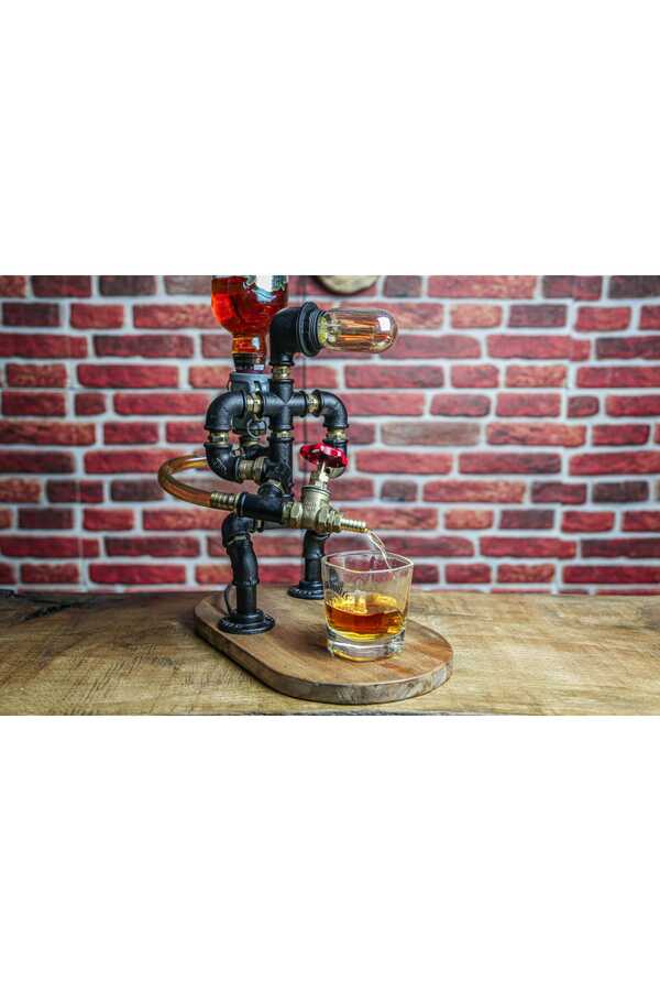 Firefighter Design Whiskey Raki FountainWe used rice that does not react with alcohol on surfaces that come into contact with liquid. We completed the brass and cast pipe with solid pine wood. We fixed and strengthened the parts with natural liquid resin. You can turn the Edison lamp on and off with a switch and use your firefighter whiskey/raki faucet as a table/night light.