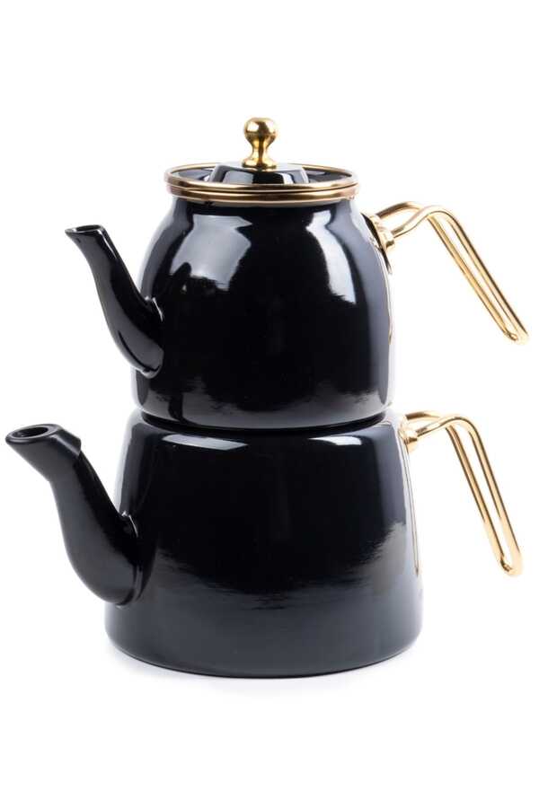Enamel Gold Lux Large Teapot Set1. It is made of high class enamel material. It has a capacity of 1.1 Lt Teapot and 2.5 Lt Teapot. Your Teas Are More Delicious With Enamel Teapot. The Upper Teapot Can Be Used As Herbal Teapot. It Can Be Used Separately On The Cooker. It Does Not Pour And Drip. It has a system that sits on the teapot. Add flavor to your kitchen with different color options..