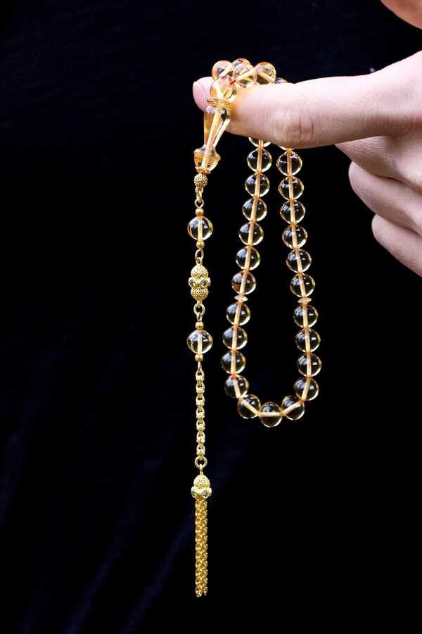Gold Plated Silver Tasseled Fire Amber Rosary