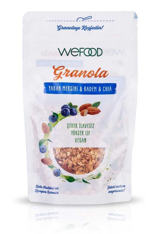 Granola Yaban Mersini & Badem & Chia 250 gr Granola, öğütülmüş yulafın fırınlanması ile elde edilen bir kahvaltılık çeşidini oluşturuyor. Kuru meyve ile yemiş çeşitlerinin yanı sıra tatlandırıcı ve doğal bitkisel yağ içeren bu karışımçıtır yapısı, hafif formülü ve uyumlu lezzeti ile günlük tüketim için ideal bir alternatif sunuyor. Wefood Yaban Mersinli & Bademli & Chia Tohumlu Granola Nasıl Yapılır? Wefood Granola çeşitlerinin yapımında kullanılan tüm malzemeler, sadece mevsiminde üretilen birinci kalite ham maddelerden oluşuyor. Yulaf ezmelerinin içerisine bademler, chia tohumları ve soğukta kurutulmuş doğal yaban mersinleri ilave ediliyor. El değmeden hazırlanan bu karışım, organik elma suyu konsantresi ile tatlandırıldıktan sonra sızma zeytinyağı ile de harmanlanarak fırına gönderiliyor. Gıdaların besin değerini kaybetmemesi için fırınlama işlemi ise uzun saatler boyunca düşük ısıda yapılıyor. Ardından granolalar, katkı maddesi ve koruyucu vb. hiçbir yapay bileşen eklenmeksizin güvenilir ambalajlarına dolduruluyor.Explore more options