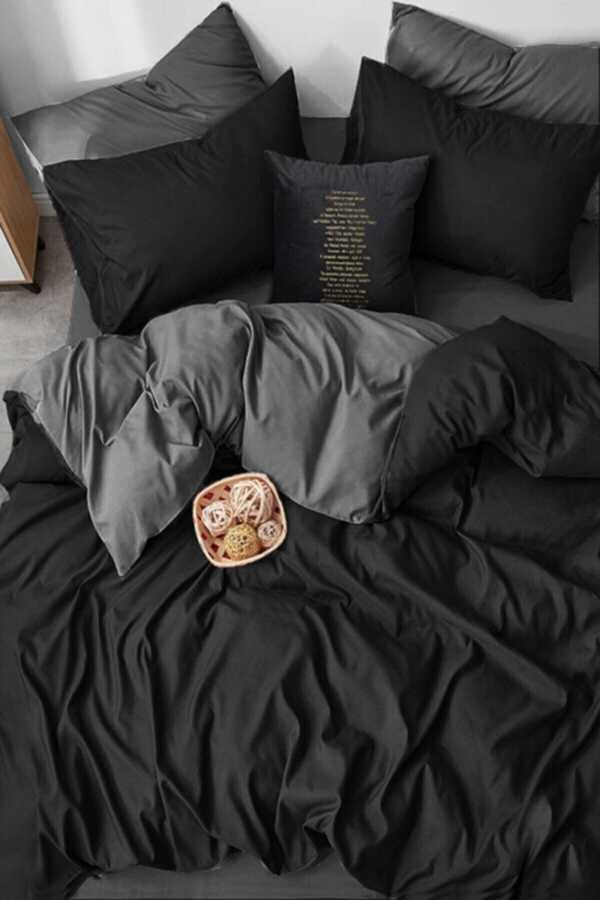 Gray-Black Ranforce 100% Cotton Double Duvet Cover Blackgrey