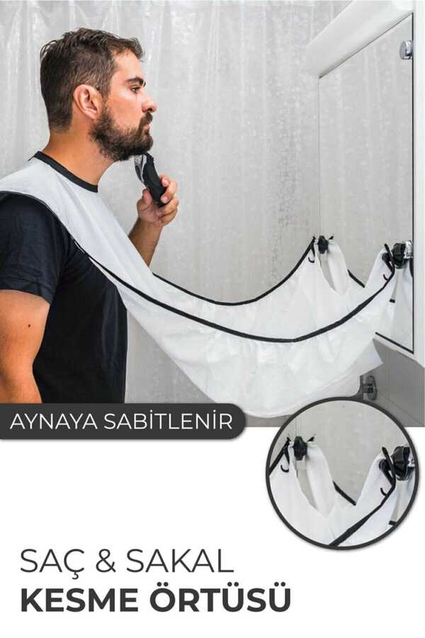 Hair Beard Trimmer Shaving Apron-White Do not miss this opportunity, designed to keep the hairs scattered around while trimming your own beard at home! With the practical beard trimming cover, your hair does not scatter while shaving and you can wear it on your neck very easily. All you have to do is fix the suction cups on the mirror or tiles and wear them around your neck! Product features: - Easy and practical use with its suction cup structure. - lint-free fabric on it - It collects the hairs scattered around while shaving