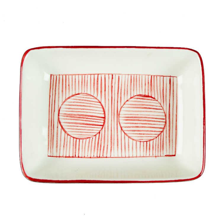 Handmade Water Patterned Red Snacks Plate , 7.4 x 5.5 x 1.5 inch