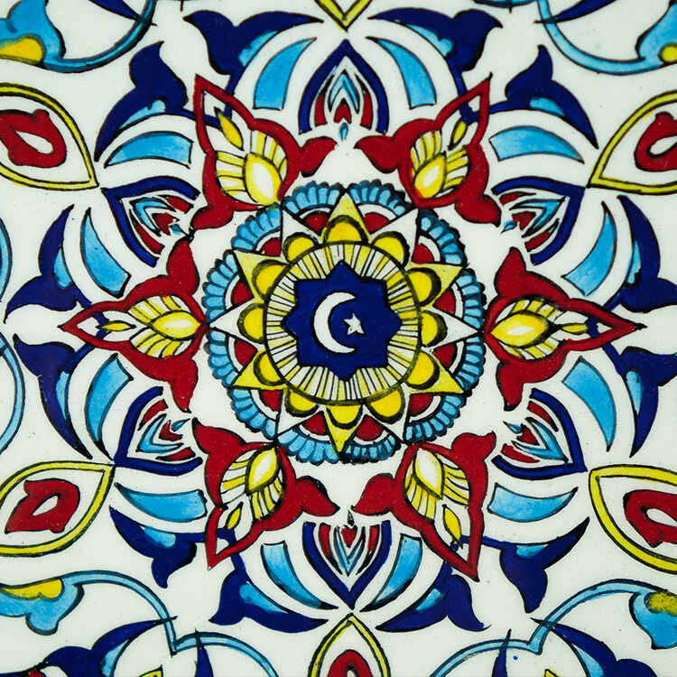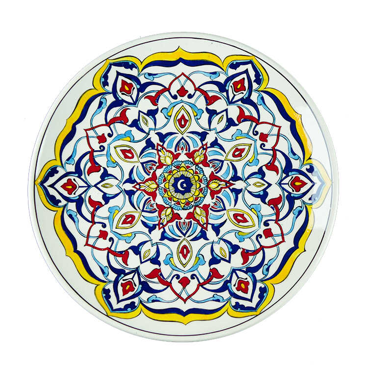 Gourmeturca Handmade White Gourmeturca Tile Dinner Plate increases the elegance of your tables with its traditional design. The energy given by the color blue, yellow, dark blue and red is also reflected in the table. Traditional motifs drawn on the white plate will take you back to the past. Eating from this plate is very enjoyable!