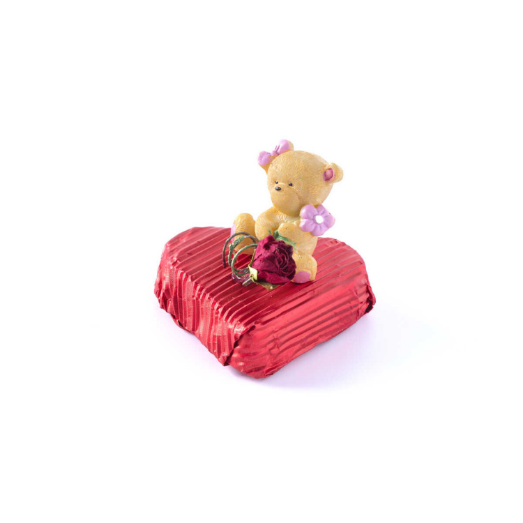 You can be happy with just one chocolate bar. Also imagine that this chocolate is in the shape of a heart. And even imagine you have a cute bear figure on the pack. This is the chocolate you are looking for! Şekerci Cafer Erol always offers you different ways to express your love and emotions. By the way, the rose detail in front of the cute bear is also impressive.