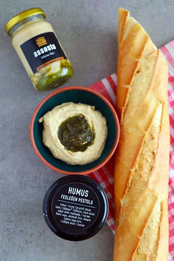 Pure Homemade Hummus with Basil Pesto Family Size 300 gr The seller determines the selling price of the product you have examined. Honest and local food Does not contain any preservatives and food additives Prepared with natural, homemade, artisanal production techniques Fully 7 A flavor and health cube that brings together the special Tıflıpaşa white tahini, which has been produced for generations, and local chickpeas. Hummus with basil pesto, an artisanal product, together with basil pesto with extra virgin olive oil, presented as a separate flavor layer in a jar, offers you the unique taste of the North Aegean. with high polyphenols, extra virgin olive oil of North Aegean production is used in all of our products. In order to offer healthy and best nutritional values, our products are kept fresh until the lid is opened by presenting them in glass jars after home canning. ASSOSTA Basil Pesto Hummus · By turning the jar upside down and decorating your appetizer plate with basil pesto with a spoon as a sauce, you can prepare a delightful table, · You can serve it as bread, with mini canapes or as a dip with crackers as a dip, · Delicious, nutritious, clean and without additives and preservatives. You can consume it in a vegan sandwich/ wrap, and as a unique flavor layer in a gluten-free diet. After the product reaches you, it can be stored closed on the jar at +4 degrees for the recommended time. It is recommended to consume within 1 week after opening in order to preserve the integrity of the flavor.Explore more options