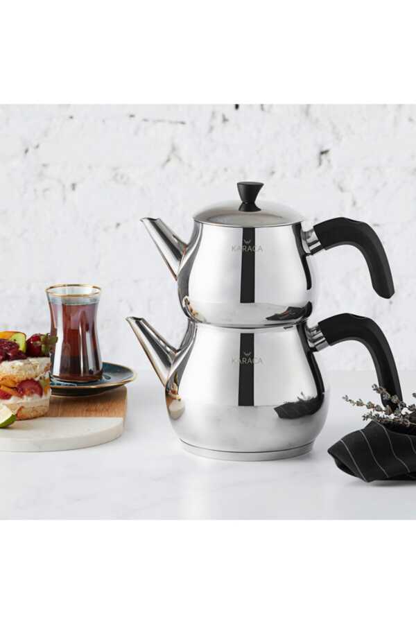 Kayra Black Teapot Set Kayra Black Teapot Set Teapot: 1Lt + Teapot Lid Drinker: 1.75 Lt There is a self-sieve. Features It can be washed in the dishwasher. It is suitable for use on induction cookers. The bowl cover is not included, the teapot cover is available.