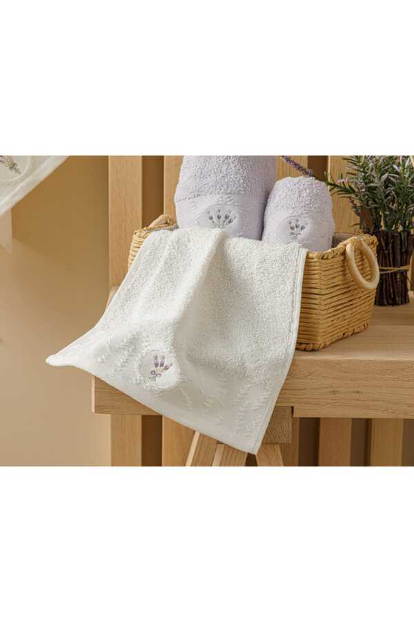 Lavandula Bordürü Jakarlı El Havlusu 30x45 Cm Ekru40 derecede yıkayınız. Yumuşak doku için yumuşatıcı kullanımı önerilmektedir.Renklerin uzun süre kullanımı için benzer renklerle yıkanması önerili.