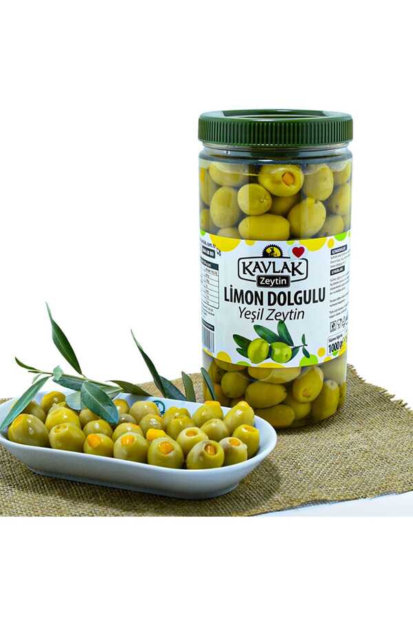 Lemon Stuffed Green Olives 1 kg Green olives with lemon are made from large-grained tomato-type green olives. Green olives consumed at breakfast have the feature of cleansing the liver.
