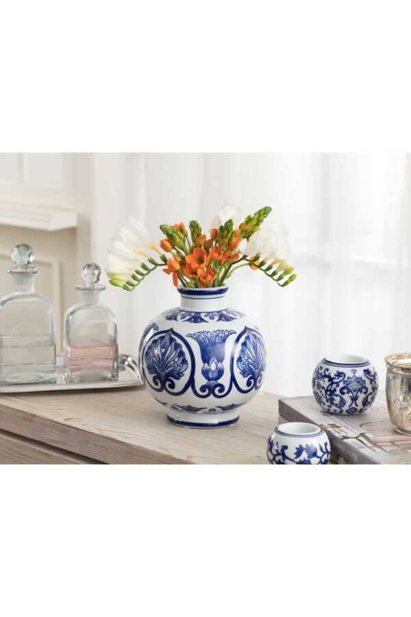 Width, length, height: 17.5x17.5x20 cm Base diameter: 10.5 cm Mouth diameter: 5.5 cm (from outside to outside 7.5 cm) cm) The widest dimension: 18.5 cm Care Usage Instructions: Porcelain and ceramic products, due to the nature of their raw materials, may show structural changes after they become products, and may form crack-like appearances on them. To clean the surface of the base, prefer a damp cloth instead of a wet cloth. Package Contents: Vase: 1 Piece.