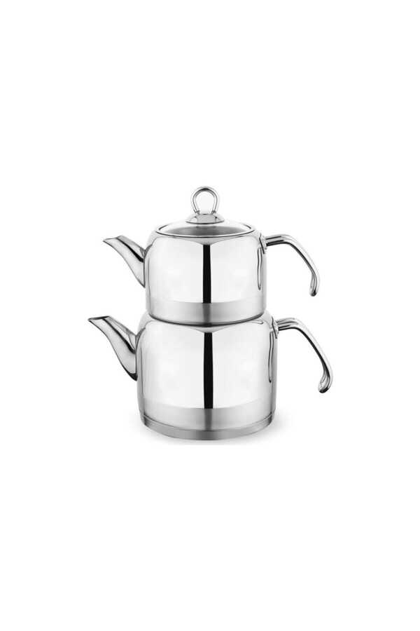 • Ada Metal Teapot Set Large 4 Pieces - InoxProduct Contents: Upper Tank: 1.55 Lt Lower Container: 2.75 Lt Height: 28 Cm Pieces: 4 Pieces Color: Inox