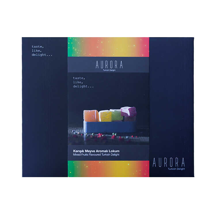 Aurora Mixed Fruits Flavoured Turkish Delight is one of the best gift alternatives in your special days and holidays, inside of the special presentation platter our delights will enrich your meetings with your family and friends. It is the best friend of the Turkish coffee. Also with the ice cream they will stand stylish.