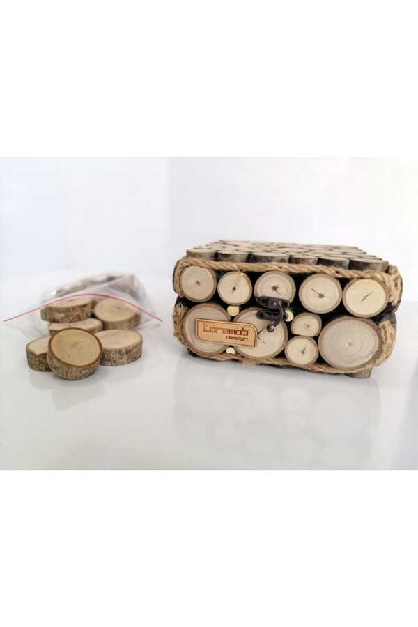 Natural Wood Wood Slices in 4 Cm and 5 Cm Diameters The product is sliced from the branch pieces of the walnut tree and no chemical preservatives are used in the product. The thickness of the wooden slices varies between 2 cm and the diameter between 4 cm and 5 cm. The product is sent as 25 pieces in a ziplock bag in the product photos. The box in the product photos is used for visual purposes and is not included in the pricing. Due to the nature of the wood, there are roughnesses and cracks may occur over time.