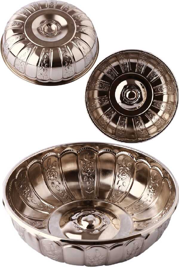 İTERSE Nostalgic Ottoman Dynasty Iron Bath Bowl Silver Color 20 CmProduct Description: It is a handcrafted product. A nostalgic period atmosphere has been added with the aging technique. It is a very stylish product to make a difference in the decor of your home. Whether you use it in your daily life or decorate your window. We offer you the unique product with coffee set and finished products with confidence and service quality. Color Options: Silver ColorGolden Yellow ColorCopper Color (brown) Nickel Oxic Antique Colors are available.Product Technical Specifications: It is made of iron material. Lacquer coating has been applied on it. It has a shiny and smooth surface. It is suitable for long-lasting use. No substances harmful to health were used during the dyeing and production of the product. Matters to be considered. As much as possible, dry after each use to extend the life of the product. Product Dimensions: 20 cm. It is in Diameter. Depth: 4.5 Cm.