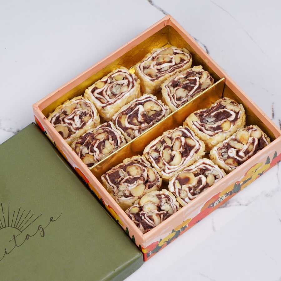 NOF Heritage Nut Wrap Dreams is a celebration of premium nuts wrap, combining whole chunks of nuts with soft, creamy chocolate Turkish delight and dusted with crushed premium Antep pistachios.