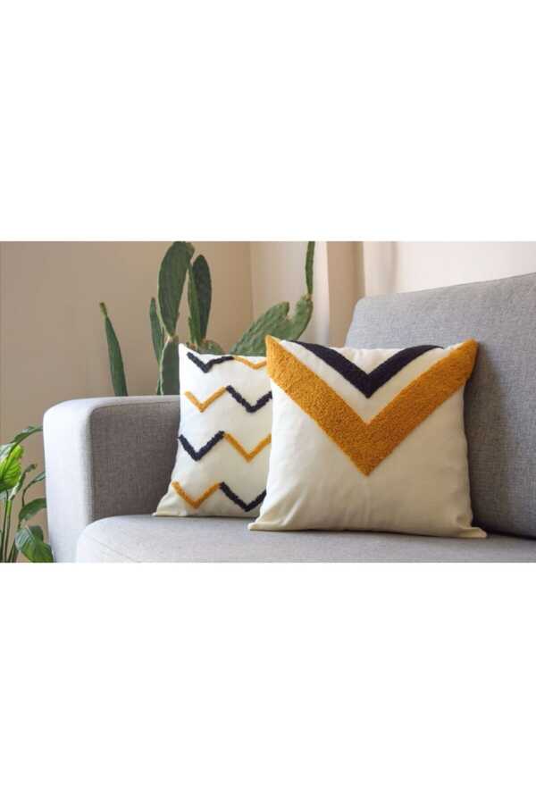 One Way Punch Embroidered Pillow Cover Set of 2-Without Inner Pillow Color: Cream, Punch Embroidery Size: 40x40 cm, Product Material: Duck Linen, Production Place: Turkey