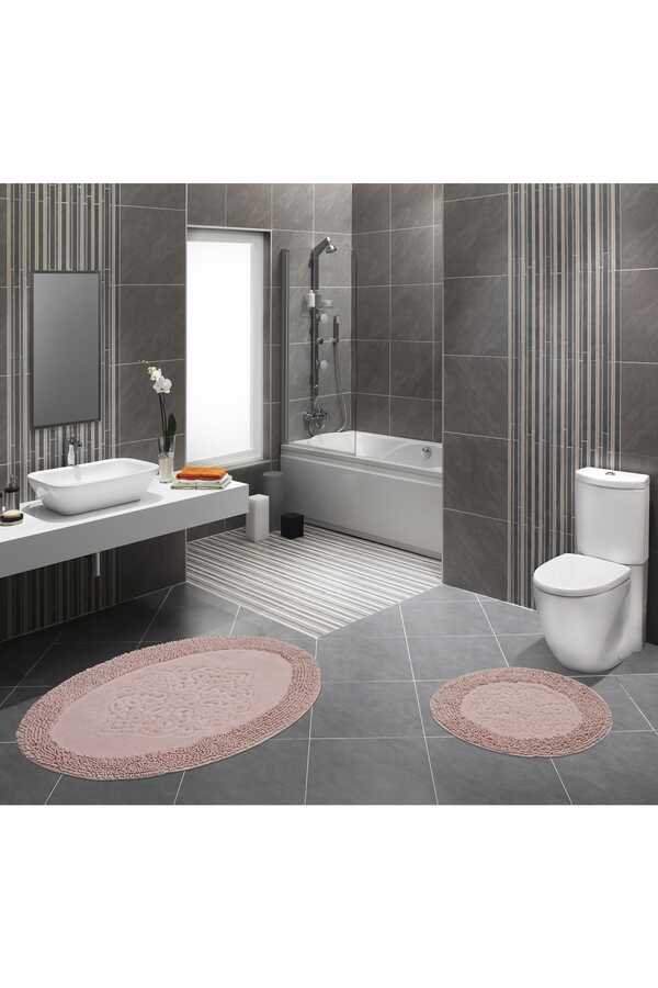 Pasta Oval 2-Piece Closet Set Powder Cotton Pasta Oval 2-Piece Closet Set Powder60cmX100cm (1 piece) - 50cmX60cm (1 piece) size mop set is produced from 100% cotton yarn. It gives this product extra softness. Thanks to cotton yarn, it absorbs water,