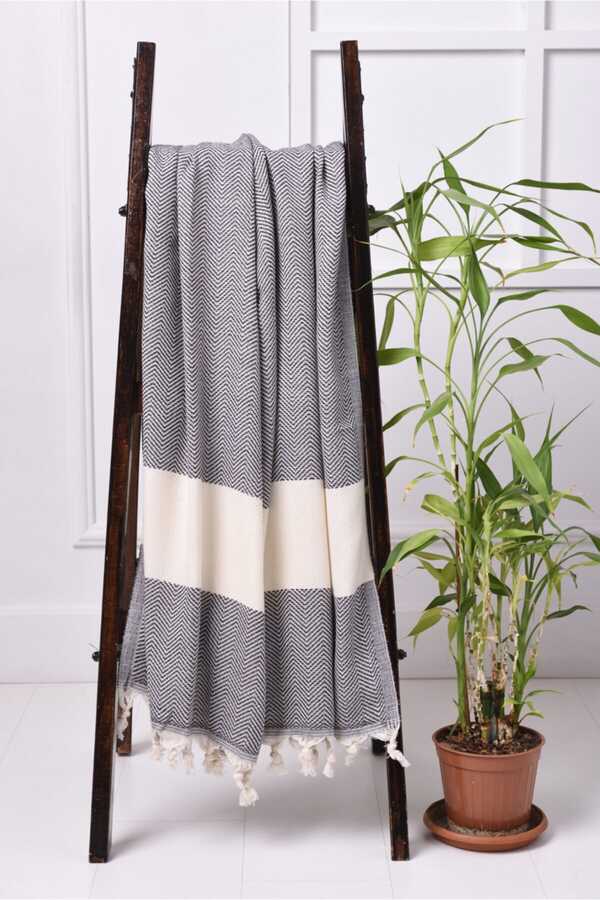 100 x 180 cm / 430 gr 100% cotton Peshtemal is a quality product that you can use in your daily life, in the pool and on the beach, as well as in home decoration. It is soft and absorbs water quickly. It can be washed by hand or in the washing machine. Do not use bleach. Can be dry cleaned.