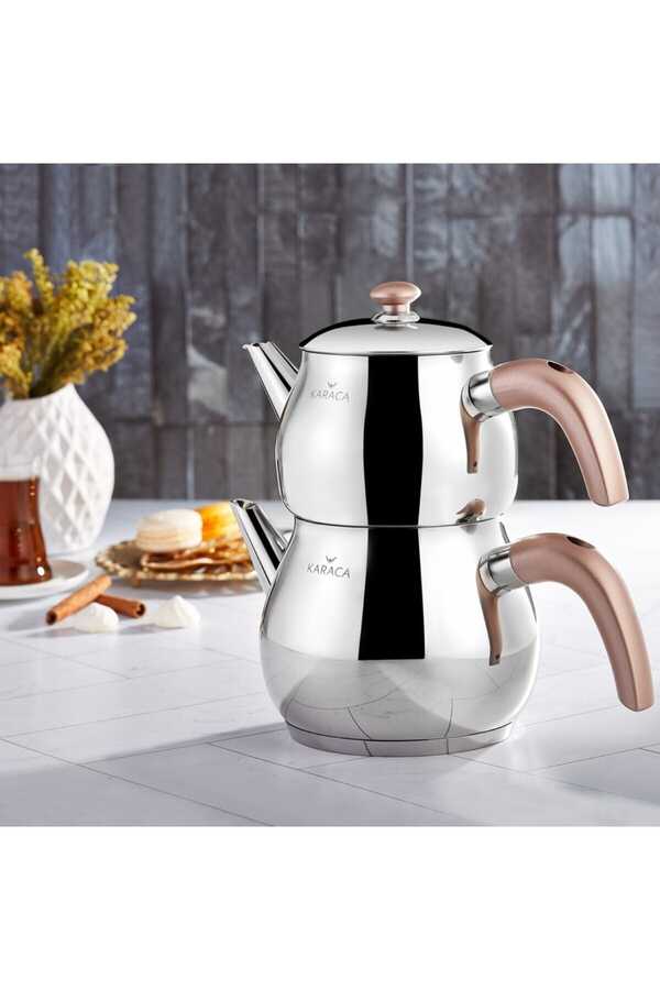 Layla Rose Teapot Set Layla Rose Teapot Set Size Teapot: 1 Lt + Teapot Cover Drinker: 1.75 LtMaterial: 18/10 Stainless Steel Features Dishwasher safe. It is suitable for use in induction cookers. There is no intermediate cover.