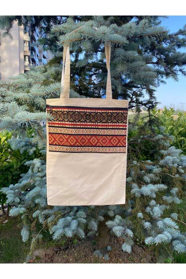 Tote Bag Authentic Kilim Pattern Zippered Fabric Shoulder BagThis product will be sent by erc home as one. Very stylish embroidered raw cloth bag that you can use comfortably. Nature-friendly Authentic kilim pattern zippered cloth fabric bag can be used as a beach bag, as a shopping bag, as a arm bag, multi-purpose cloth that can be used daily bag.