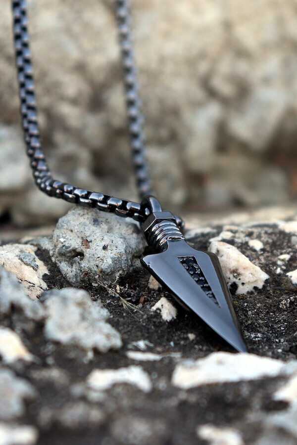 • Aykuş Triagle Arrowhead Mens Black NecklaceIt is resistant to tarnishing and rusting. Chain Length 60 cm.