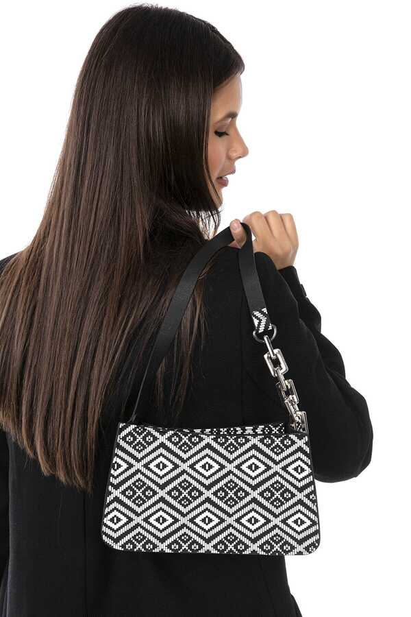 • Women Rug Pattern Chain Detailed Baguette BagSize:MiniDimensionsWidth:24 cm, height:14 cm, width:5 cm