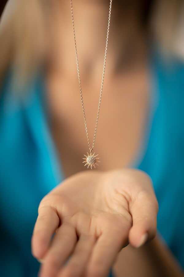 Women's Sun Silver Model Rose Plated Italian Necklace 925 sterling silver and gift package. The product is made of pure silver. The product is 1.7 grams. Chain length is 45 cm.