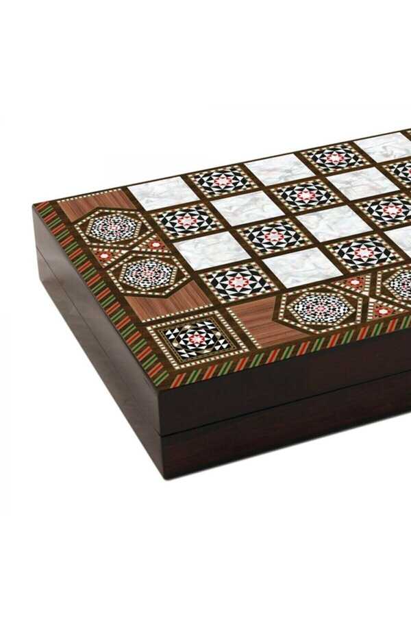 Wooden Scale, Solid, Mother of Pearl Backgammon 50*50 Cm Large size. Solid mother-of-pearl backgammon large size 50x50 cm 16 mm solid wood case. Fully painted and 2 coats of varnish. Thanks to the special coexcello coating under the varnish, scratch and wear-proof floor Magnetic closing mechanism. 36 mm cream-black backgammon scales. 9mm plastic dice. Nylon enclosure in an offset printed micro corrugated cardboard product box. wooden backgammon stamp.