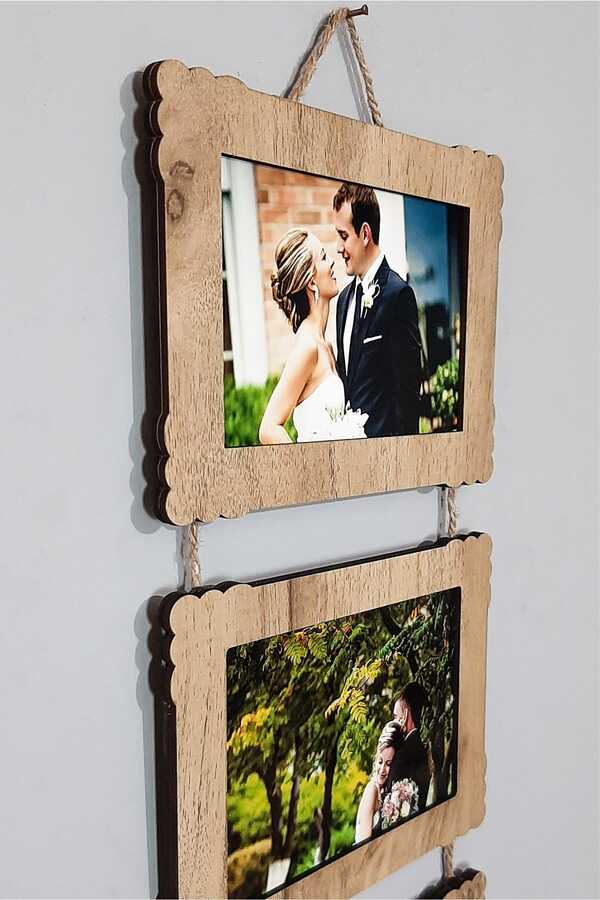 Wooden 3 Pieces 10x15 Cm Rope Photo Hanger HorizontalTHIS PRODUCT IS MANUFACTURED BY HANEMGROUP. OUR PRODUCT IS MADE FROM 3 PIECES OF 10X15 CM LASER MDF FRAME. IT IS 6MM. EACH FRAME TAKE A PHOTO WITH THE MEASUREMENT OF 10X15 CM. THE MEASUREMENT OF EACH FRAME IS 13X19 CM FROM THE OUTSIDE. ALL THE DETAILS ARE SHOWN IN THE IMAGES AND ALSO STATED IN THE EXPLANATION.